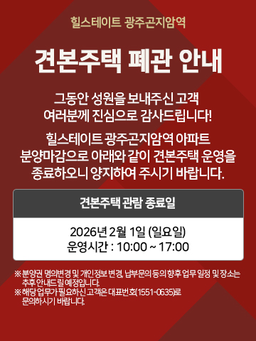 힐스테이트 웹사이트는 HTML5 기준의 브라우저에 최적화 되어 있습니다. Edge, Chrome, Firefox, Safari 브라우저에서는 정상적으로 이용이 가능하며, IE11 이하의 브라우저에서는 일부 기능이 정상적으로 동작되지 않을 수 있습니다. 위의 아이콘을 클릭하시면 해당 브라우저 설치 화면으로 이동합니다.
